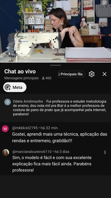 Apaixonada pelo que faz, Bia transmite não apenas técnicas, mas também inspiração, confiança e amor pelo mundo da costura criativa.
